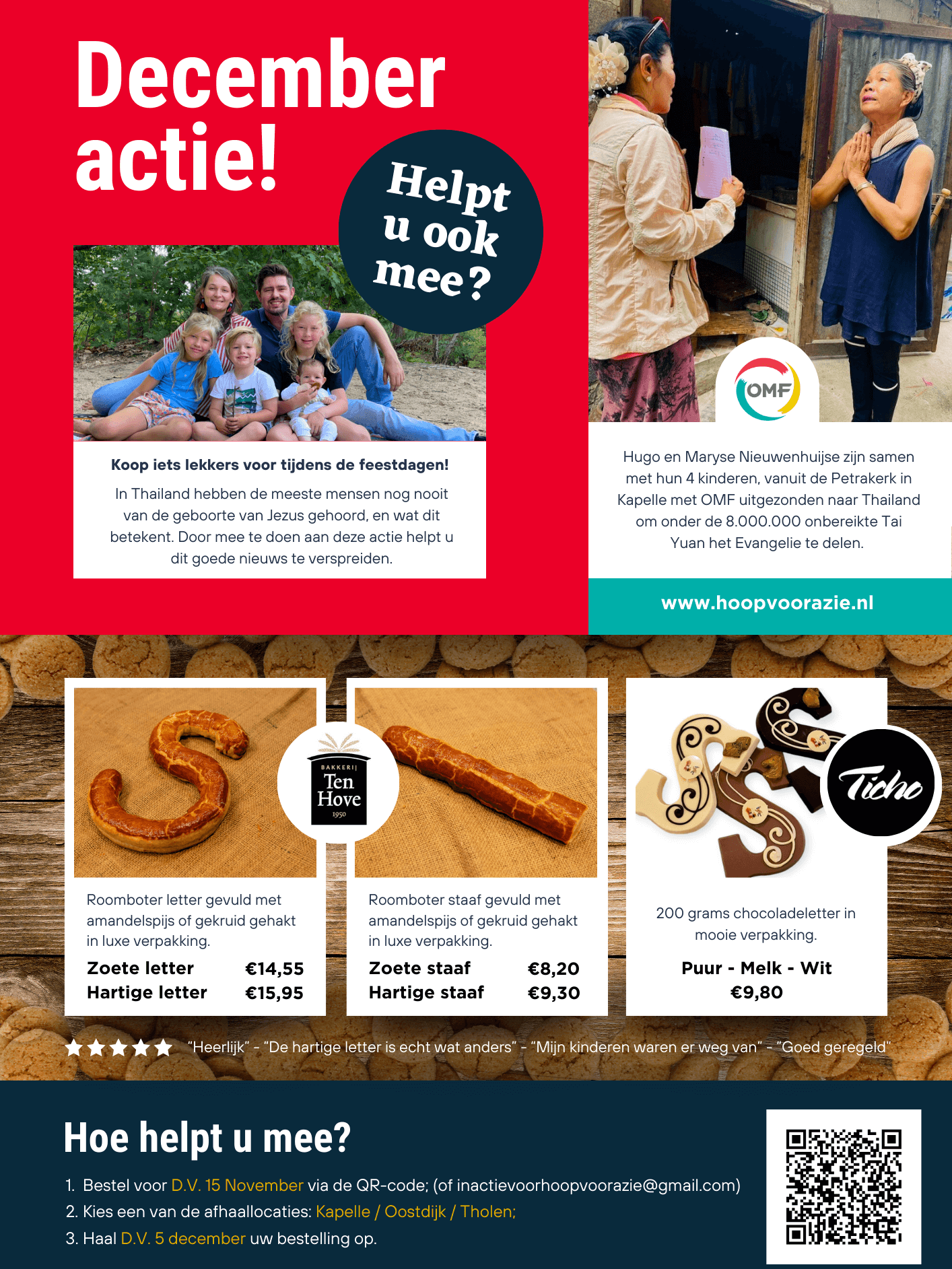 In Thailand hebben de meeste mensen nog nooit van de geboorte van Jezus gehoord, en wat dit betekent. Door mee te doen aan deze actie helpt u dit goede nieuws te verspreiden en geniet u zelf (of uw collega’s) van iets lekkers tijdens de feestdagen.
